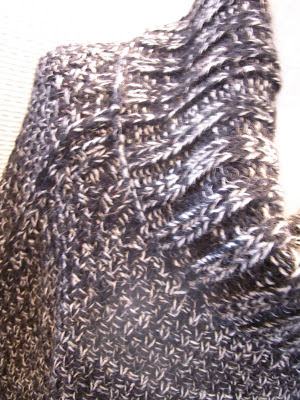 ボタンなど一切なく、付属のピンで留めるだけのストール風カーデ
